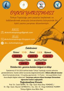 Afyon Kocatepe Üniversitesi öğrencilerine yönelik AKÜ Türkçe Topluluğu tarafından düzenlenen öykü yazma yarışmasının ödül töreni, Abdullah Kaptan Konferans Salonu’nda gerçekleştirildi. Farklı fakültelerden ve bölümlerden birçok öğrenci, kaleme aldıkları öykülerle yarışmaya büyük ilgi gösterdi. Yarışmada dereceye giren öğrencilere ödülleri, Türkçe Eğitimi Anabilim Dalı öğretim üyeleri tarafından takdim edildi. Yarışmaya katılan tüm öğrencilere katılım belgesi ve kitap hediye edilirken, dereceye giren öğrencilere ödülleri törenle verildi.